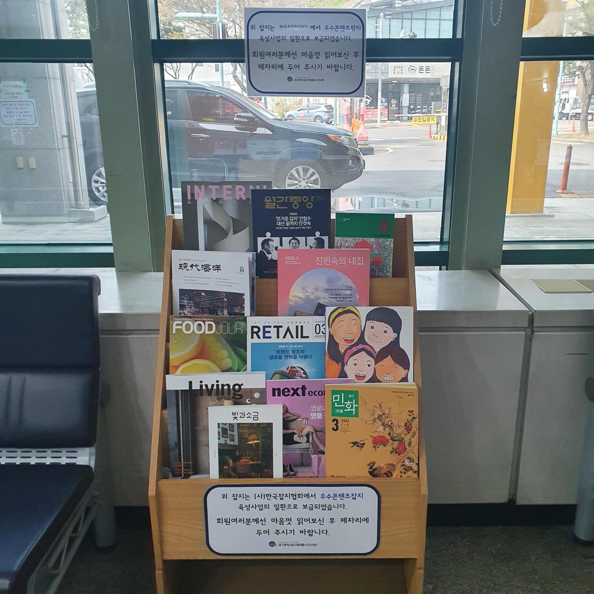본 센터에서는 (사)한국잡지협회에서 우수콘텐츠잡지 육성사업의 일환으로 잡지를 보급받았습니다.